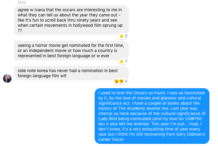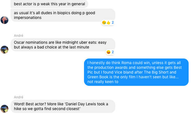 We present to you the 2019 Oscars Roundtable, featuring the founders and staff writers of Rough Cut — in group chat form.