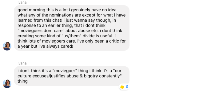 In a wider sense, this also rings true to the film community spread across the world, who share our passion of cinema – bonding us across time zones and countries. That love of movies and dedication to the internet bind us together. Whether it be on Twitter or Instagram DMs, Whats App, Facebook, or good old-fashioned texting, the discussions we have with each other about film are as critically engaging and invigorating as any formal review we write. Our messages are their own form of discourse. Much like a podcast, this is just a different way of recording a conversation – typos, instinctual reactions, and emojis, all inclusive and mostly unabridged.