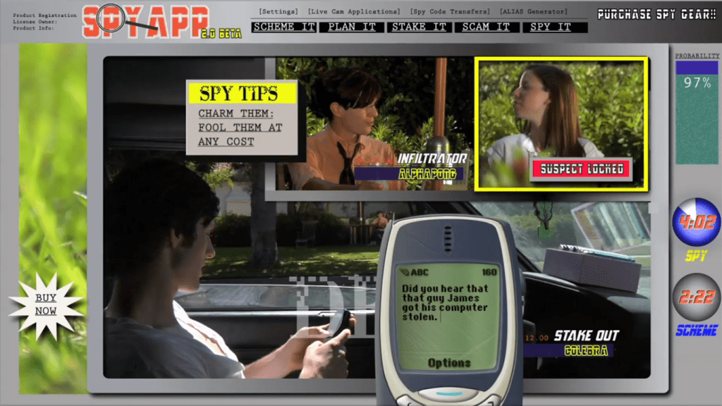 It’s exactly this formal chaos gives way to some of the film’s best moments, idiosyncrasies impossible to imagine in another type of film. One such moment stages James’ casual grilling of a culprit as multicam footage broadcasted within a free 15-day trial of a mock surveillance software “SpyApp”. The scene is covered from multiple angles and arranged in splitscreen à la a modern De Palma bit – shot, reverse shot, and wide shot all sit in the frame within a frame, overlapping, giving a full perspective on the scene. Within this, phones pop up on screen showing messages being sent in real time, flashbacks occur in extra windows and progress bars count up and down, ever changing. Fucking mayhem!