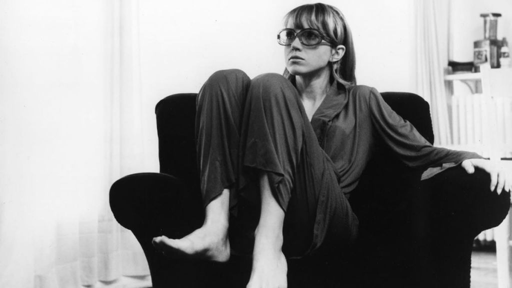 Despite its duration, L’amour fou feels more like a high-wire act than a slow burn, maintaining a constant, teetering quality between its states of agony and impassioned joie de vivre. Kalfon, with his sprawling stature and dark eyes, transmits both the authoritative posturing of a director and the frenzied bewilderment of an outgrown child. Ogier—who Marguerite Duras famously admired as the embodiment of “absolute vagueness”—conveys a transcendent vacancy. Her soft flux in expression evokes an ambient, clawing discontent, and she is prone to slinking from sweetness into sudden cruelty. When troupe member Puck (Liliane Bordoni) detects Claire’s loneliness, she gives the couple a kitten, which Claire takes to hissing at and refuses to name. “By the way, the kitten’s dead,” she lies to Puck over the phone, laughing without a beat. “I’m kidding,” she relents, then doubles back: “He’s just very sick.”