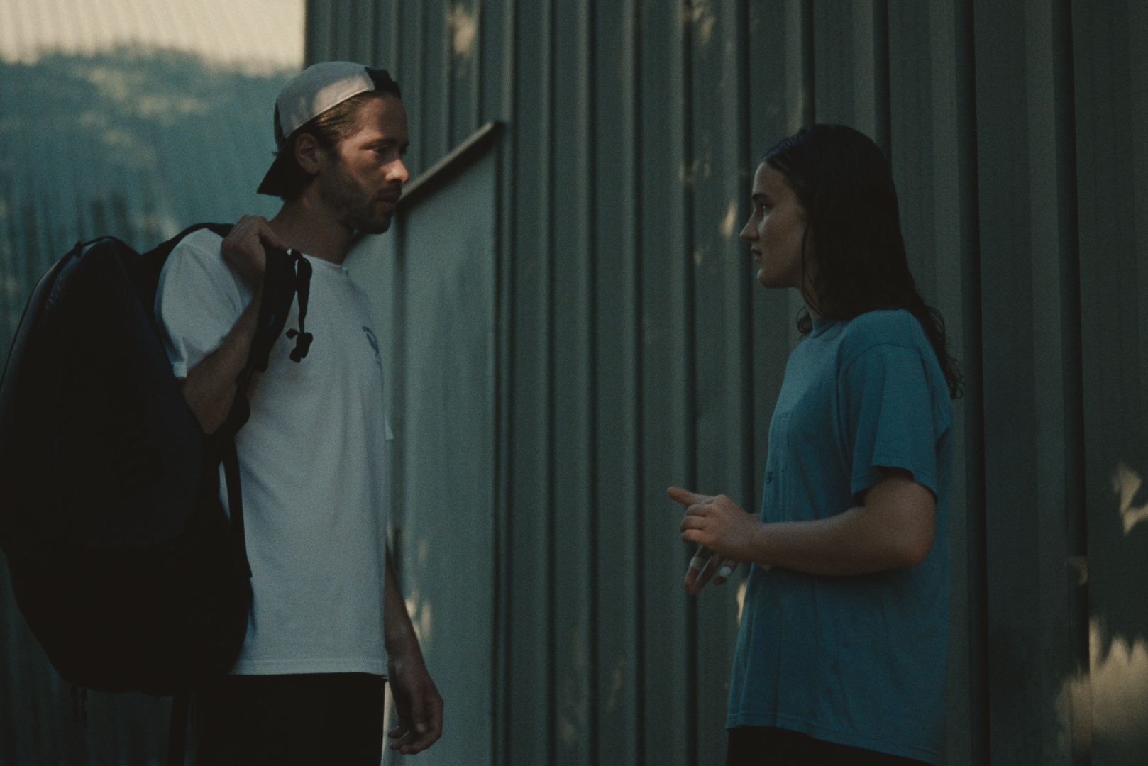 For the role of Julie, Van Dijl underwent a casting search for a real-life tennis player. “From the moment Tessa walked in, I knew she was Julie,” he recounts. “She did things on camera I’ve never seen.” Van den Broeck, who also performs all the tennis in the film, is outstanding as Julie. A difficult character for any actor (let alone a first-timer), the role of Julie poses the unique challenge of a woman who wants to assert her agency by withholding her voice. Much is conveyed in Van den Broeck’s intensely physical performance and the steely expression Julie tries to hide behind. Yet the actor still bears the cracks in Julie’s tightly worn mask, as the weight of her silence takes its toll.