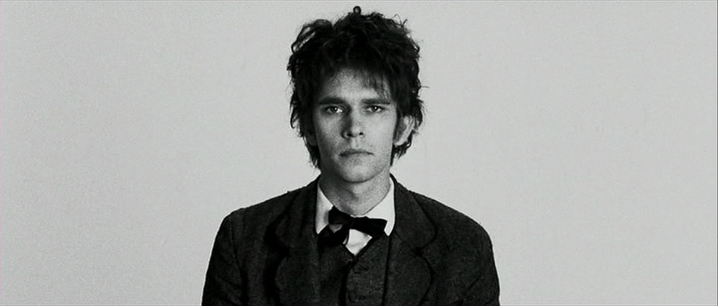 I’m Not There starts in black and white with a shot from Blanchett’s ‘Dylan’ perspective as he walks on stage. The unsteadiness of the camera and its positioning teases the voyeuristic impulse of the biopic viewer—will we finally get His story? But as soon as Dylan enters the stage, the film cuts to the title card: a steady long shot of a motorcycle riding across the screen—a reference to Dylan’s infamous motorcycle crash. “There he lies,” the narrator booms, as we see Blanchett’s Dylan in a hospital following the crash. “A devouring public can now share the remains of his sickness.”