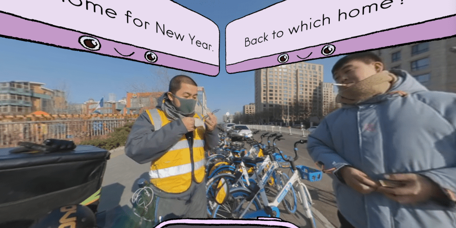 “Playable documentary” Out For Delivery (2020) is a 42 minute 360-degree video depicting food delivery workers in Beijing the day Wuhan City shut down due to COVID-19. The player sees the city and inhabitants in first-person from a fixed point—the camera held by Yuxin Gao, the documentary’s creator—and follows the workers on foot and scooter. The player can change the direction of the view by moving their mouse, in a similar manner to a first-person shooter. The actors in this game are simply documentary subjects, living their lives, going about their ordinary jobs. Artist and game developer Robert Yang, whose article “A call for video game realism” inspired Out For Delivery’s creation, has described the game as an “alienation simulator,” for what it might reveal to someone from the West about what they don’t know about contemporary China. In another sense, the method of its creation produces one of the least alienated gaming experiences I can remember, a counterpoint to one of the central characteristics of video games, and nerd culture generally: estrangement from the lived, practical world.