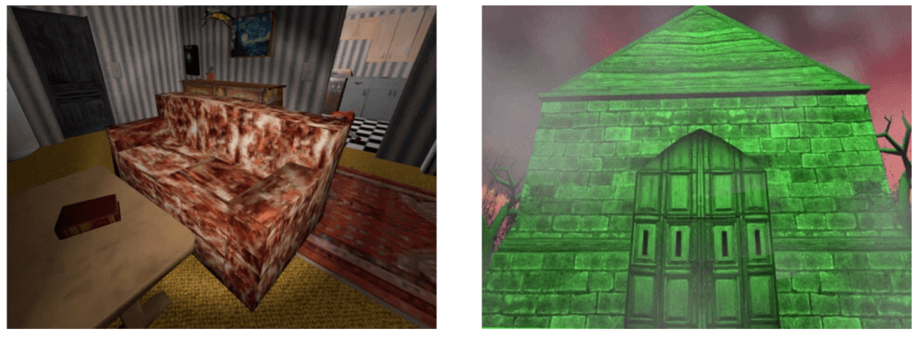 The names Fulci and Mattei may be relatively exotic in the context of video games, but for bedroom developers like King and Hoare, the mining of cinephilic horror territory has been a successful modus operandi. In recent years, a fertile crop of short DIY horror efforts emulating VHS, CRT (cathode ray tube displays), and blocky, early-3D PlayStation games has carved out an online niche. This is thanks to the seminal, streamer-friendly works of Benedetto Cocuzza (a.k.a. Puppet Combo), under whose micro-label Torture Star Video Night At the Gates of Hell was published. With quickly made efforts inspired by slasher and exploitation works, such as the Texas Chainsaw Massacre-inflected Power Drill Massacre (2015), Cocuzza provided a model that bears the fruits of a lesson well-learned: that in horror, jaggedness and raggedness can be turned to significant advantage.