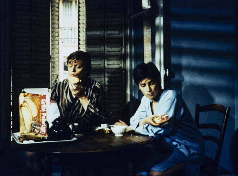 To end on elle (she) is a radical departure—to first enunciate, and thus stake claim to, je (I). Mostly plotless, to give a précis may betray Akerman’s ambiguity. Open to interpretation, we follow the narrator Julie (Akerman, of course), who makes void the heterosexual expectation and all those associated scripts which muster her to he, before finally returning to, and spending an uninterrupted sex scene with she. In her first narrative feature, Akerman gives female desire and sexuality uninterrupted and monumental significance. Identification and labels, however, become suspect in Akerman’s cinema. “What the film enunciates,” writes Élisabeth Lebovici, “is not a difference, but a decentring of the enunciation, cracking the cultural cement.”2 She is separate, and then two bodies become one.