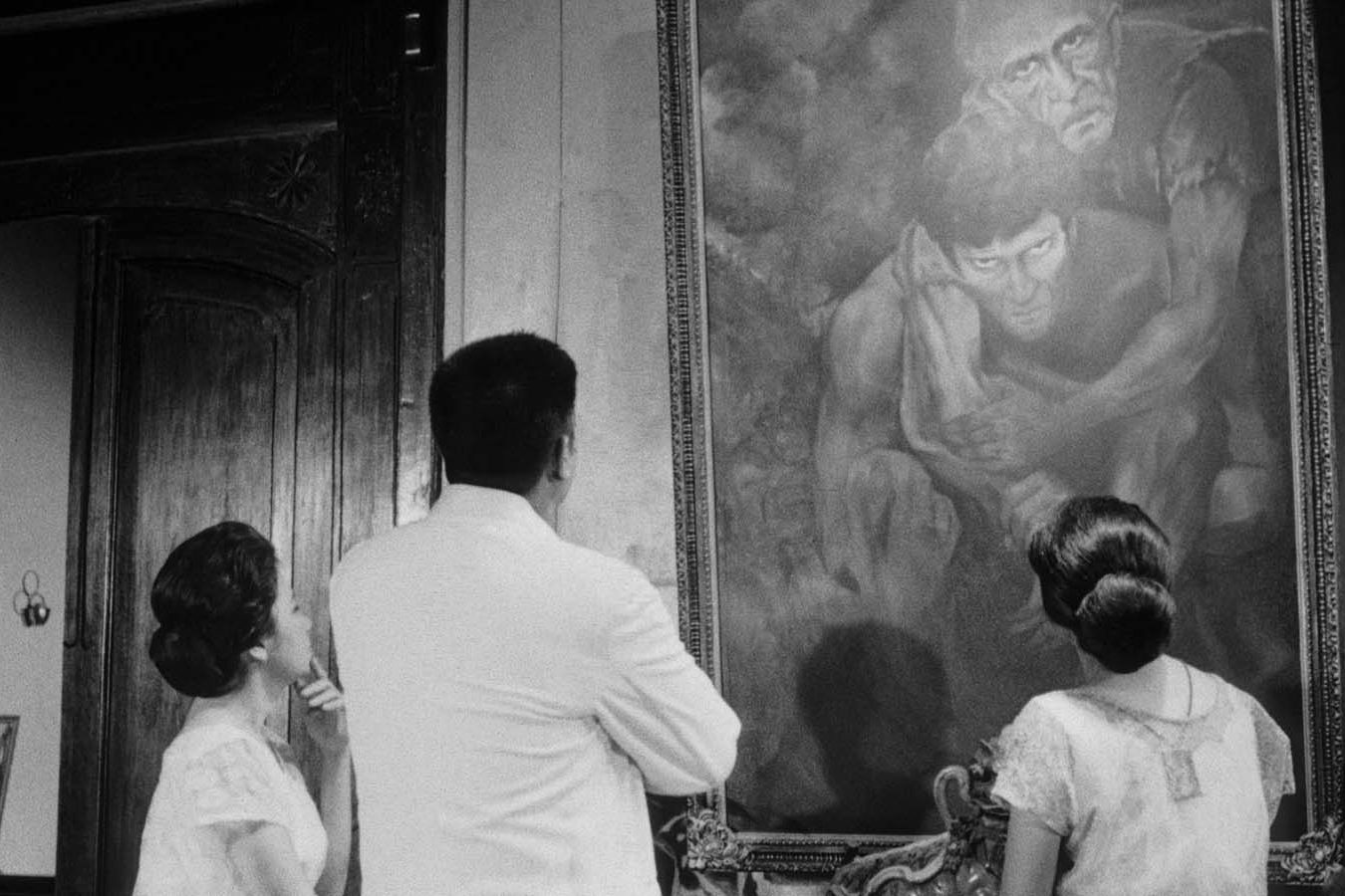 It is with this generosity and open-mindedness towards adaptations that I can comfortably proceed with my displeasure at Lamberto V. Avellana’s A Portrait of the Artist as Filipino (1965), adapted from Nick Joaquin’s 1950 play of the same name. Both texts follow Candida and Paula Marasigan, daughters of artist and former general of the 1896 Katipunan revolution, Don Lorenzo. Clinging to their childhood home and the eponymous portrait—a parting responsibility from their father that seems to embody both the power of symbolic representation and the ease with which it can be weaponised—the drama largely unfolds in the domestic space of the Marasigan house, with the stage play’s action set entirely in the sala.
