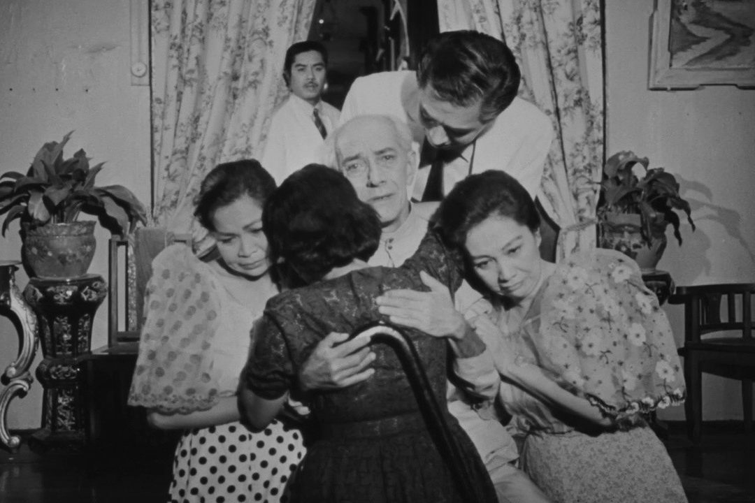 The second scene exemplifying this cult of celebrity is the fulfilment of Joaquin’s curtailed deus-ex-machina—though Don Lorenzo eventually leaves his room in the play, he never appears on stage. The artist thus eludes us, appearing only to the actors, much like his painting. Avellana instead gives in to this device’s easy resolution, just as he further cements the biblical hermeneutics of his interpretation. Even the arrangement of the actors in the reconciliation scene is composed almost like the Pietà, with Don Lorenzo as the Virgin bearing his children. Benjamin’s sense of “the eternal image” of history here has a more religious undertone. Nevertheless, the experience of uncertainty evoked by Joaquin’s inversion of the ‘god in the machine’ is eliminated. Intramuros’ destruction, described by Bitoy at the end of the film and play, is made impotent. The film reassures its audience that the Marasigan family are together in death, as they were not in life. Joaquin’s suspension of a happy ending lingers: like a memory, it gives us a space for contemplating the after, to remember that Intramuros, once the seat of the Spanish-colonial government, was reduced to a “man-made hell” by the end of the war.7 Where Joaquin sought to haunt, Avellana instead immortalised.